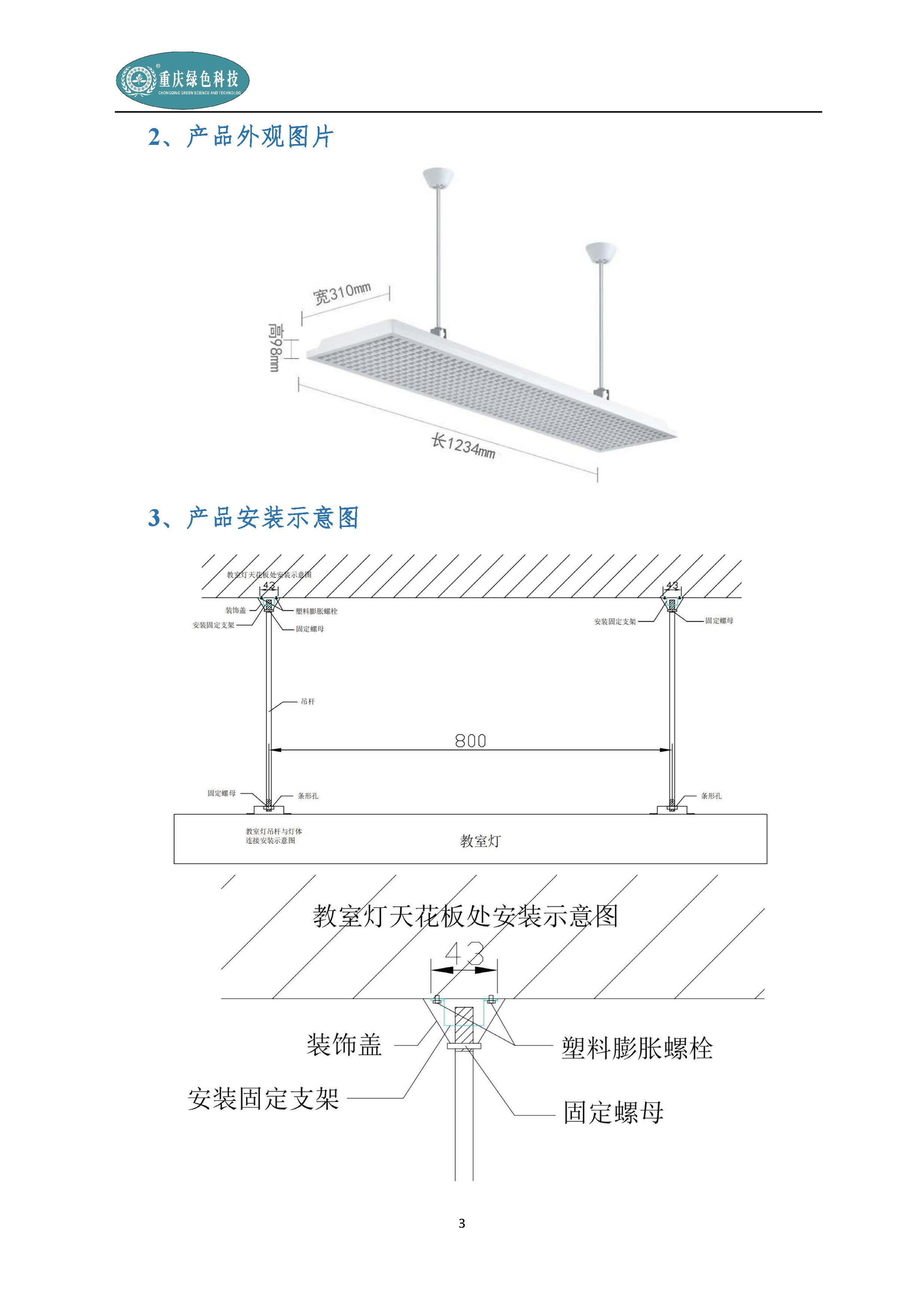 全光譜光源多色溫教室照明通用智能護眼燈產品說明書